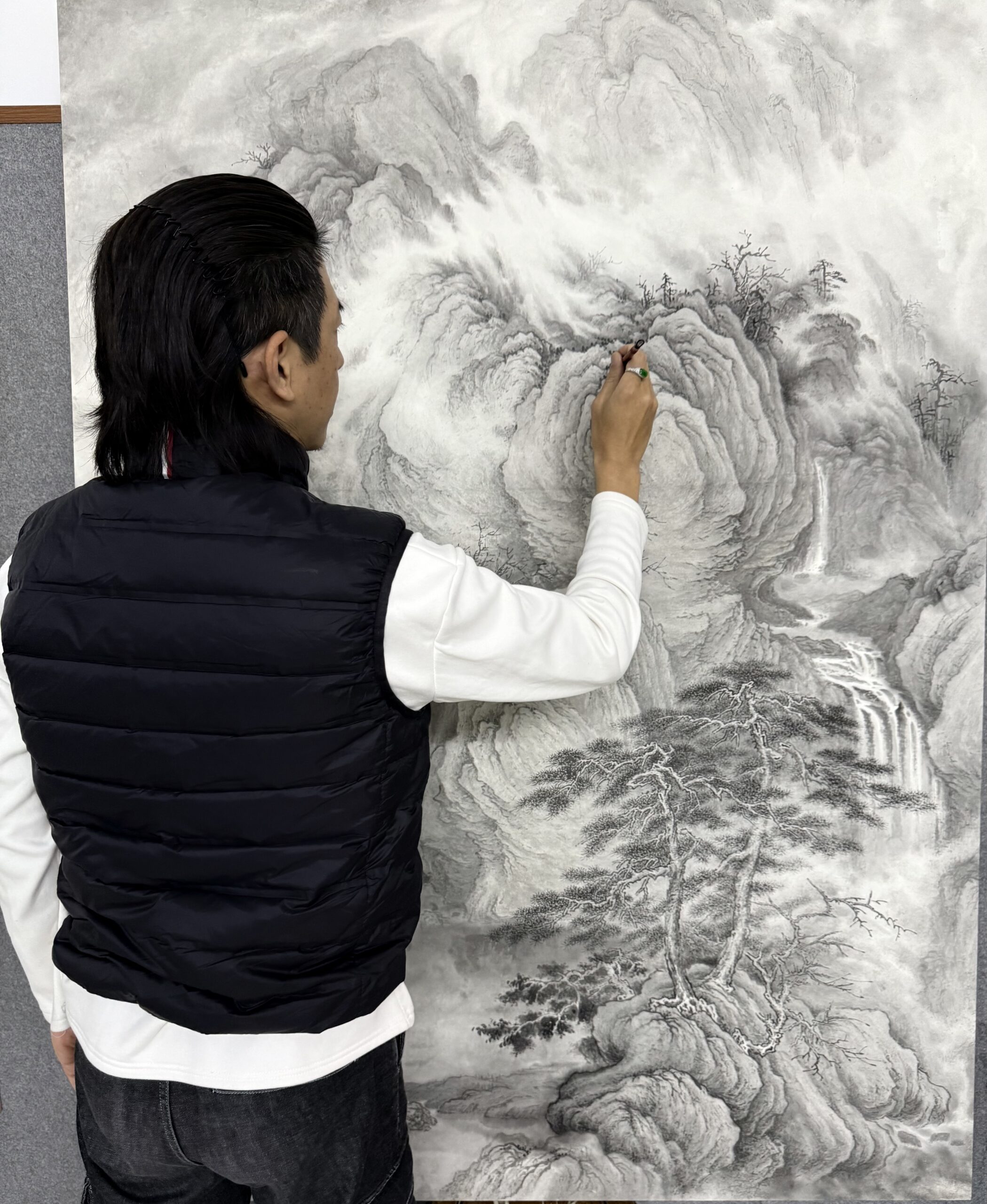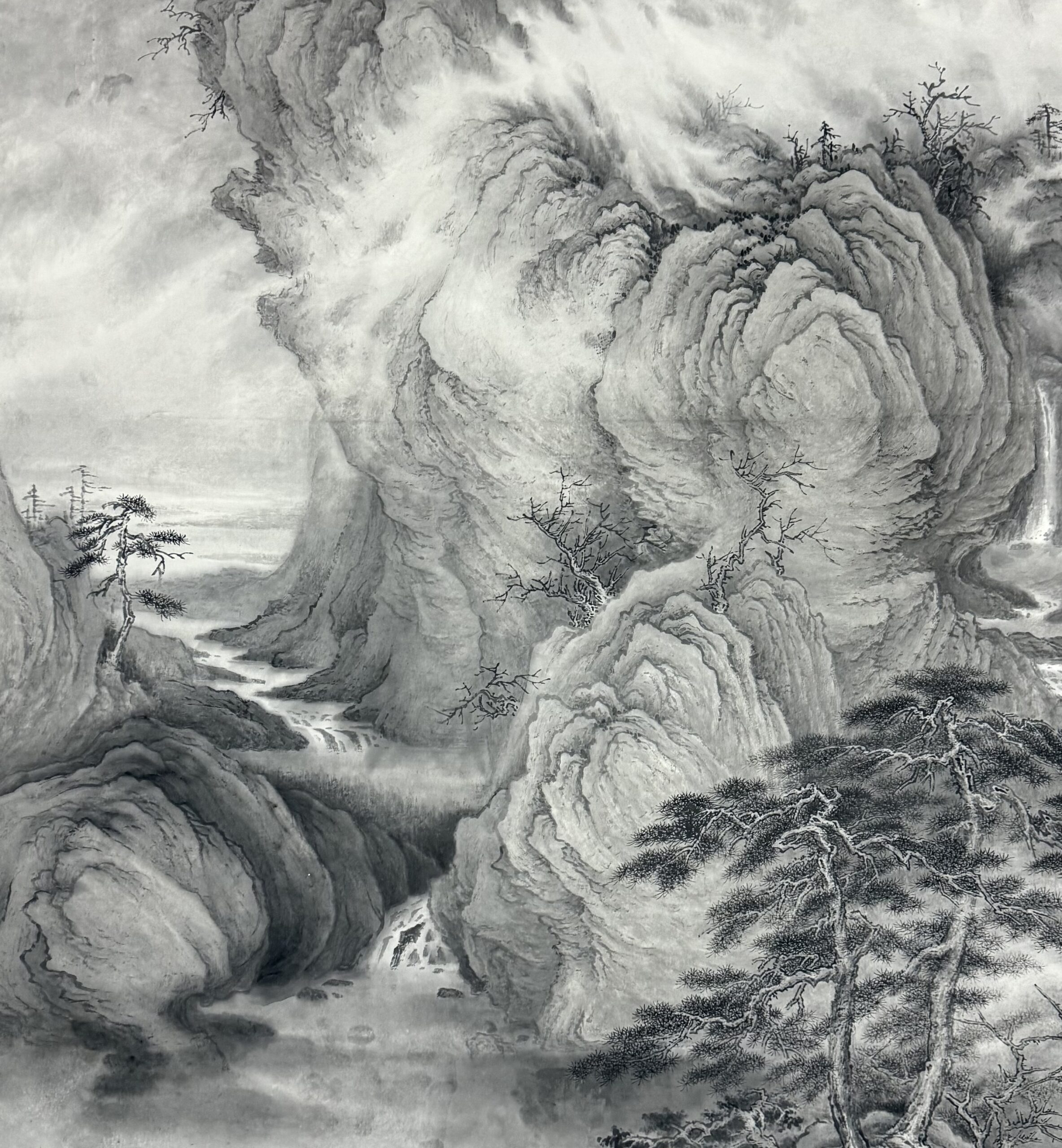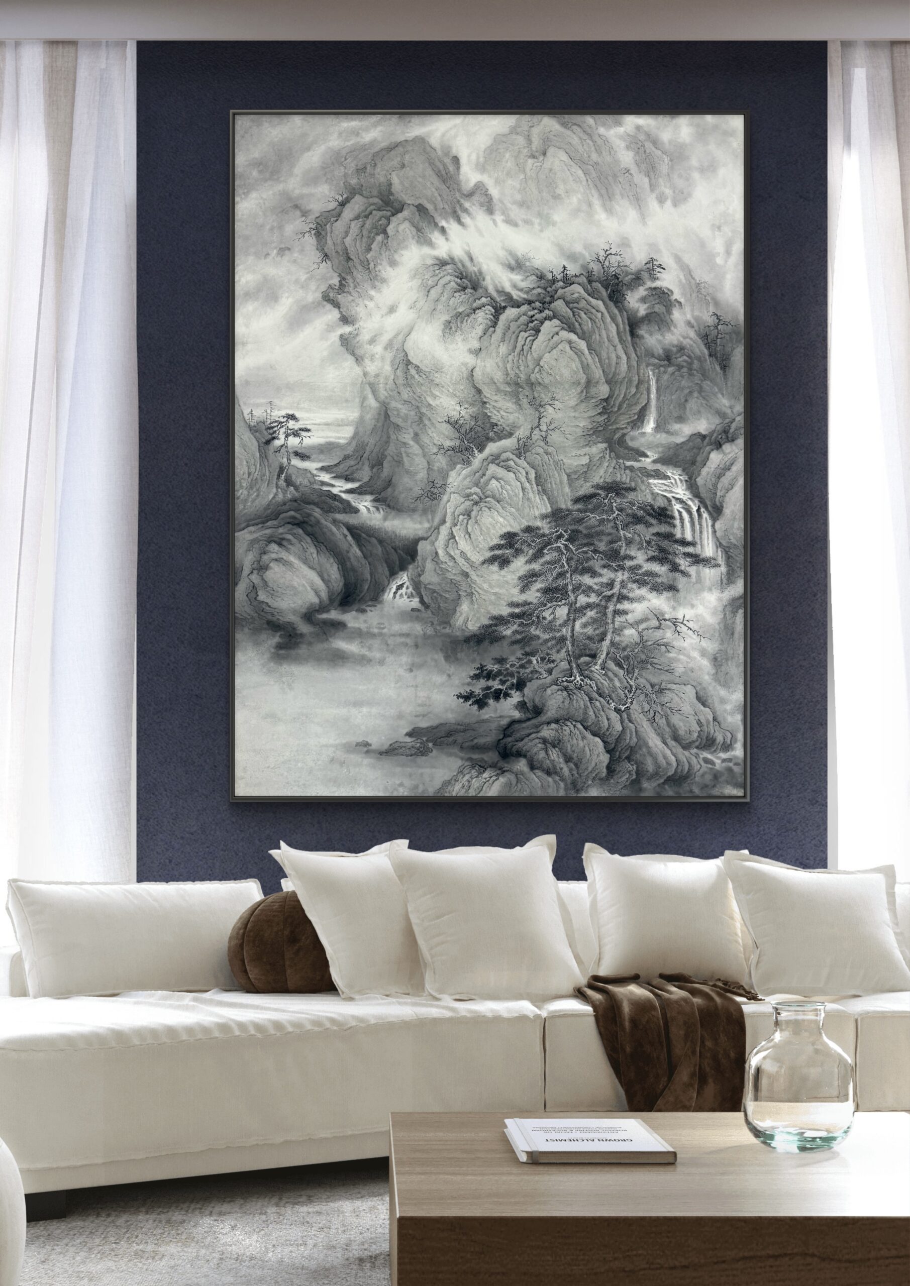 #chinese ink painting #ink wash painting #Contemporary Ink #Ink on Paper #Chinese Landscape #Large Scale Art #Spiritual Landscape #Fine Art Ink #Nature Abstraction #Pine Tree Art #Zen Art #Mountain Waterfall