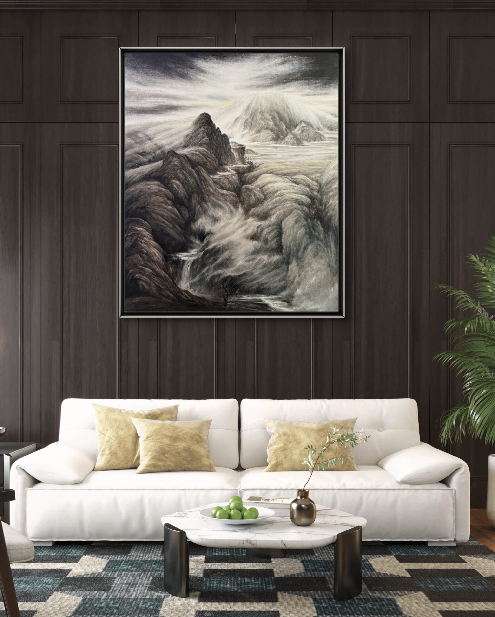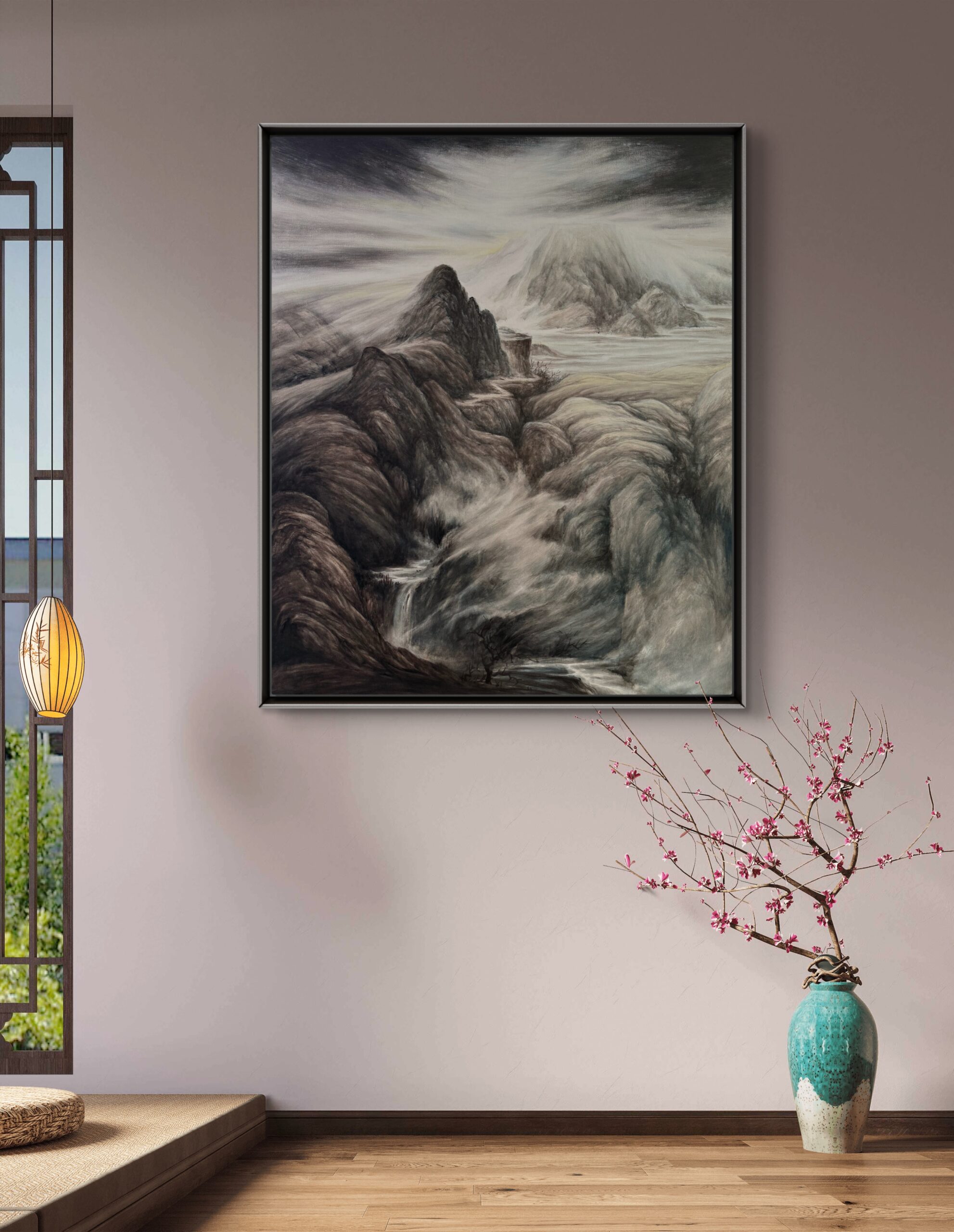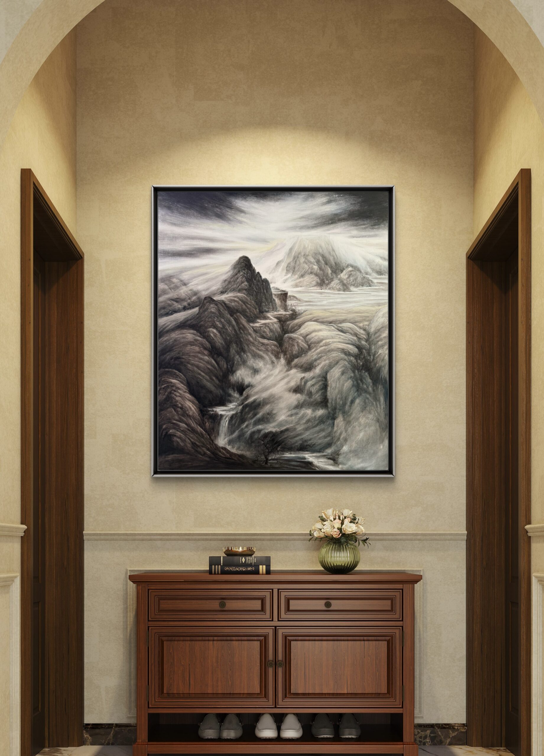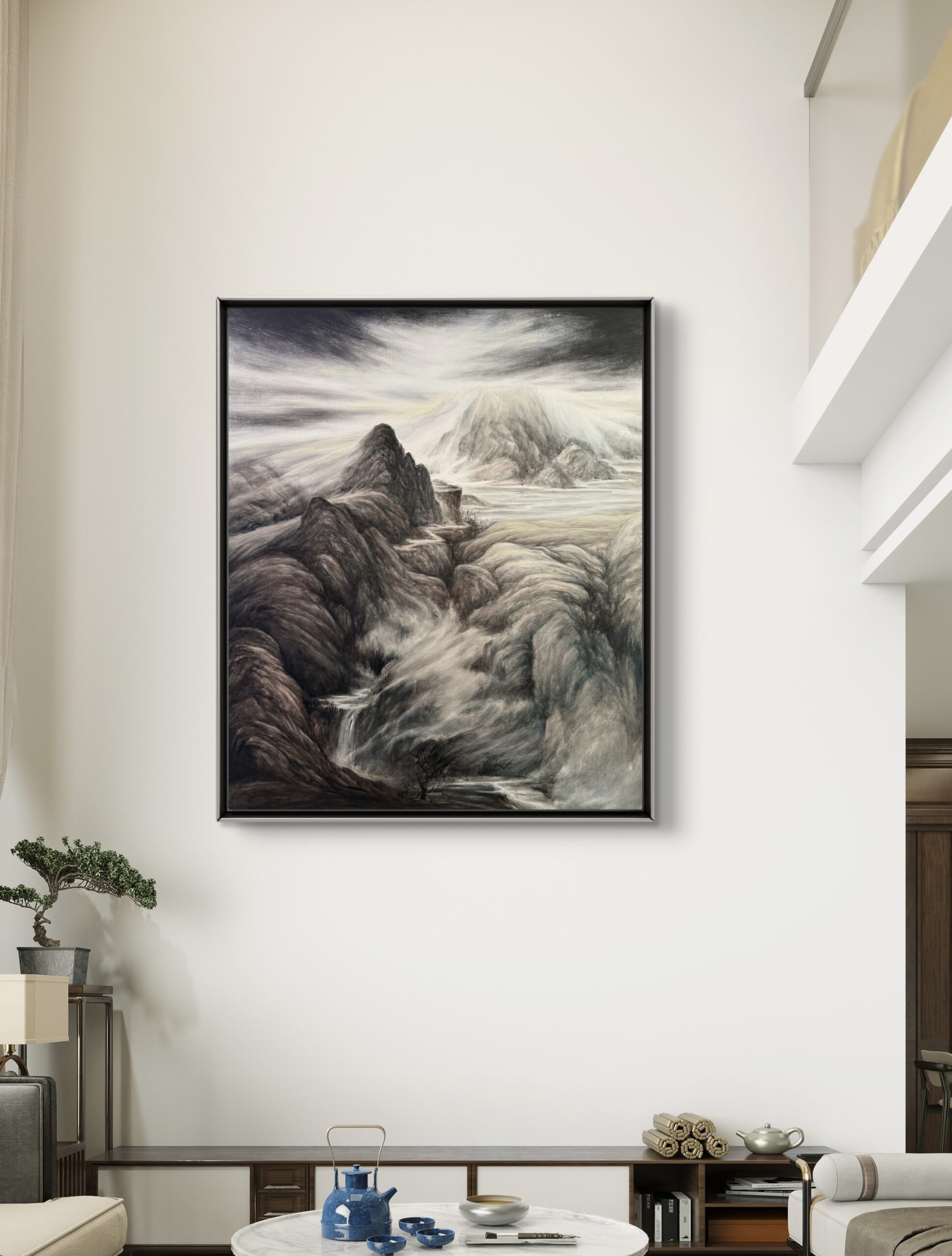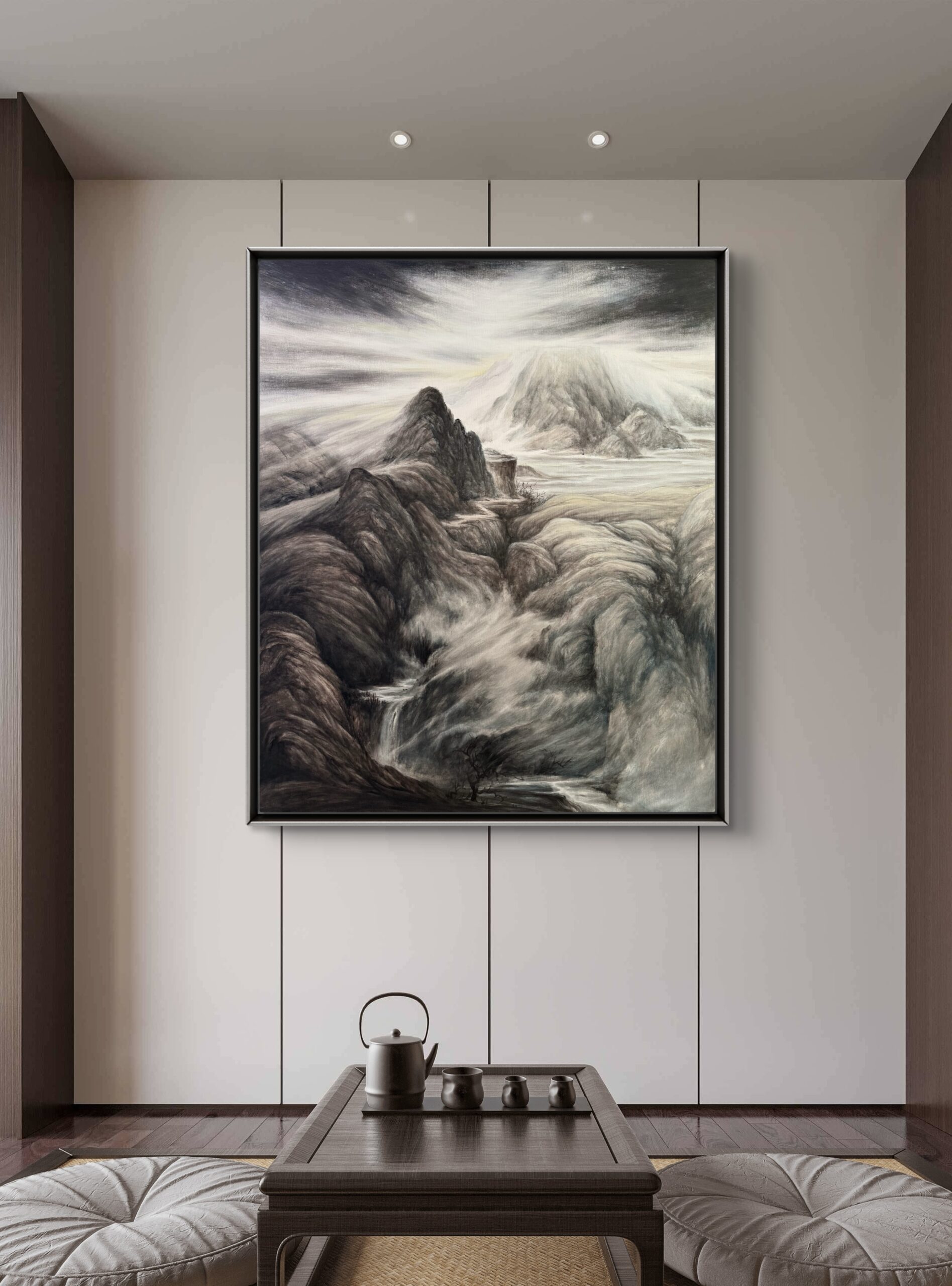 This large-scale horizontal work is an ideal statement piece for sophisticated living spaces, executive offices, or luxury hospitality environments. It offers a powerful yet calming presence that complements both modern and classic interiors. Perfect for collectors of Abstract Landscapes, Contemporary Realism, and Philosophical Art.