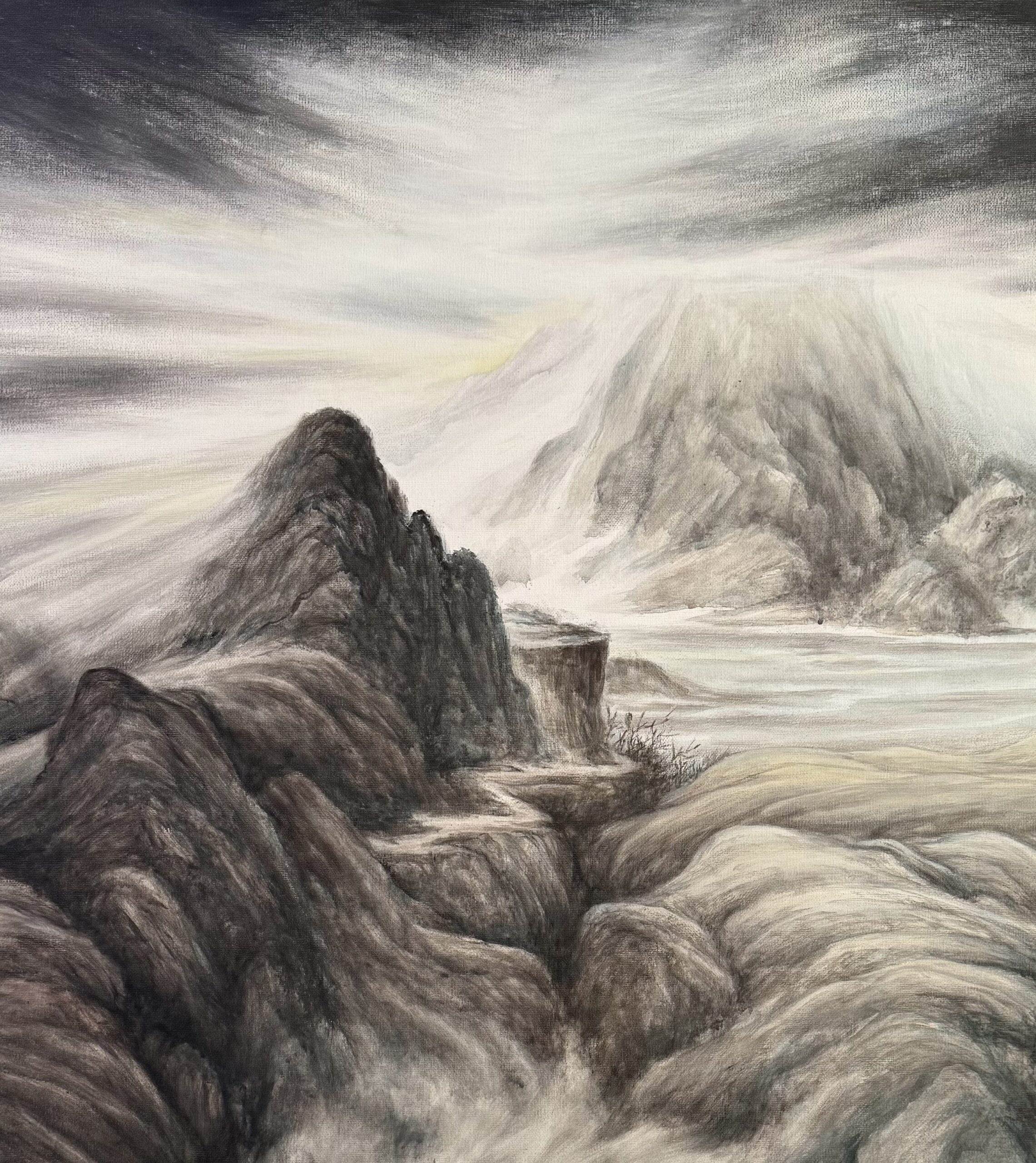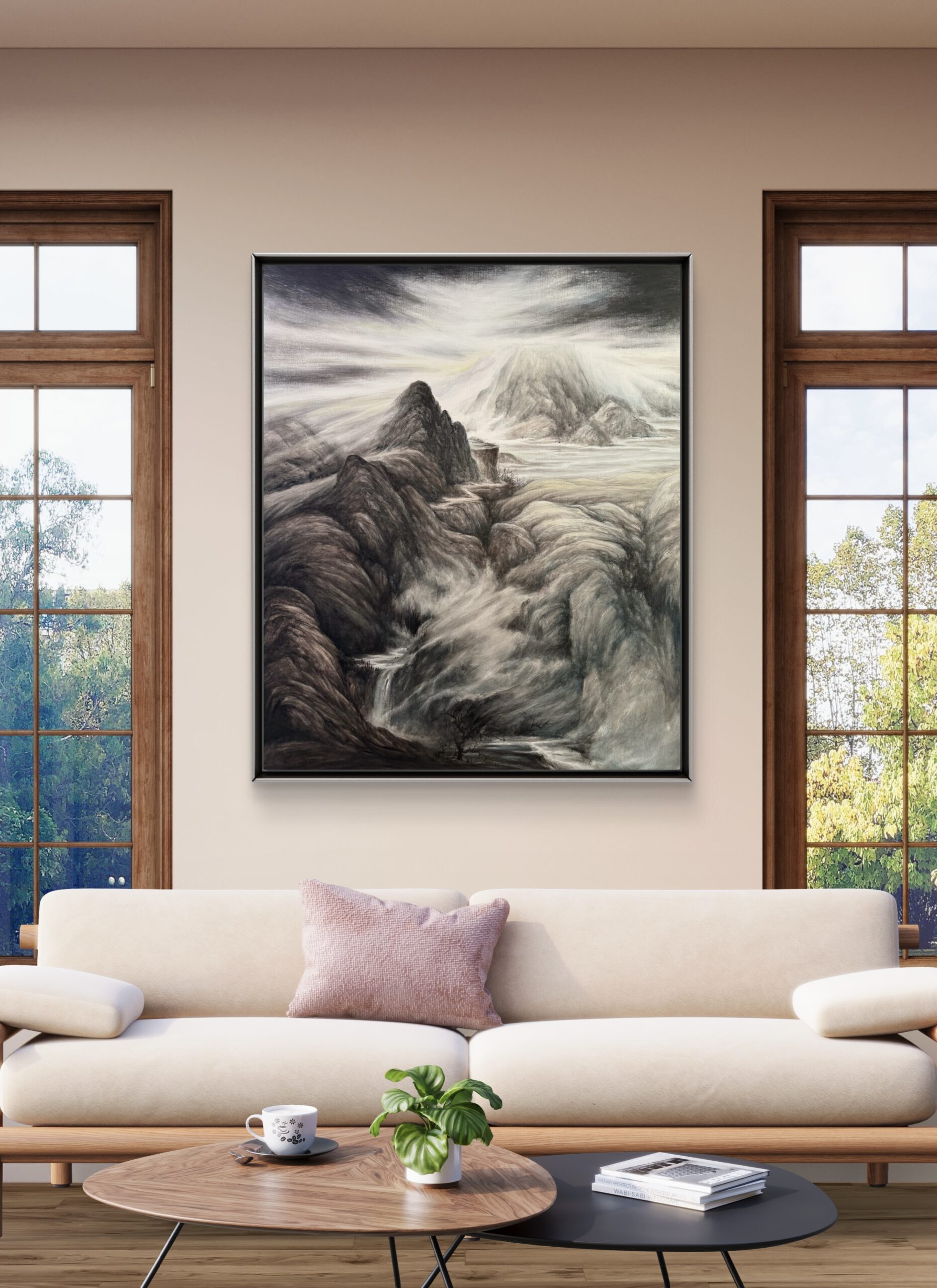 #Contemporary Acrylic #Abstract Landscape #Spiritual Art #Timeless Nature #Statement Piece #Large Canvas Art #Meditative Art #Modern Realism #Atmospheric View #Philosophical Art #Mountain Majesty #Ethereal Sky