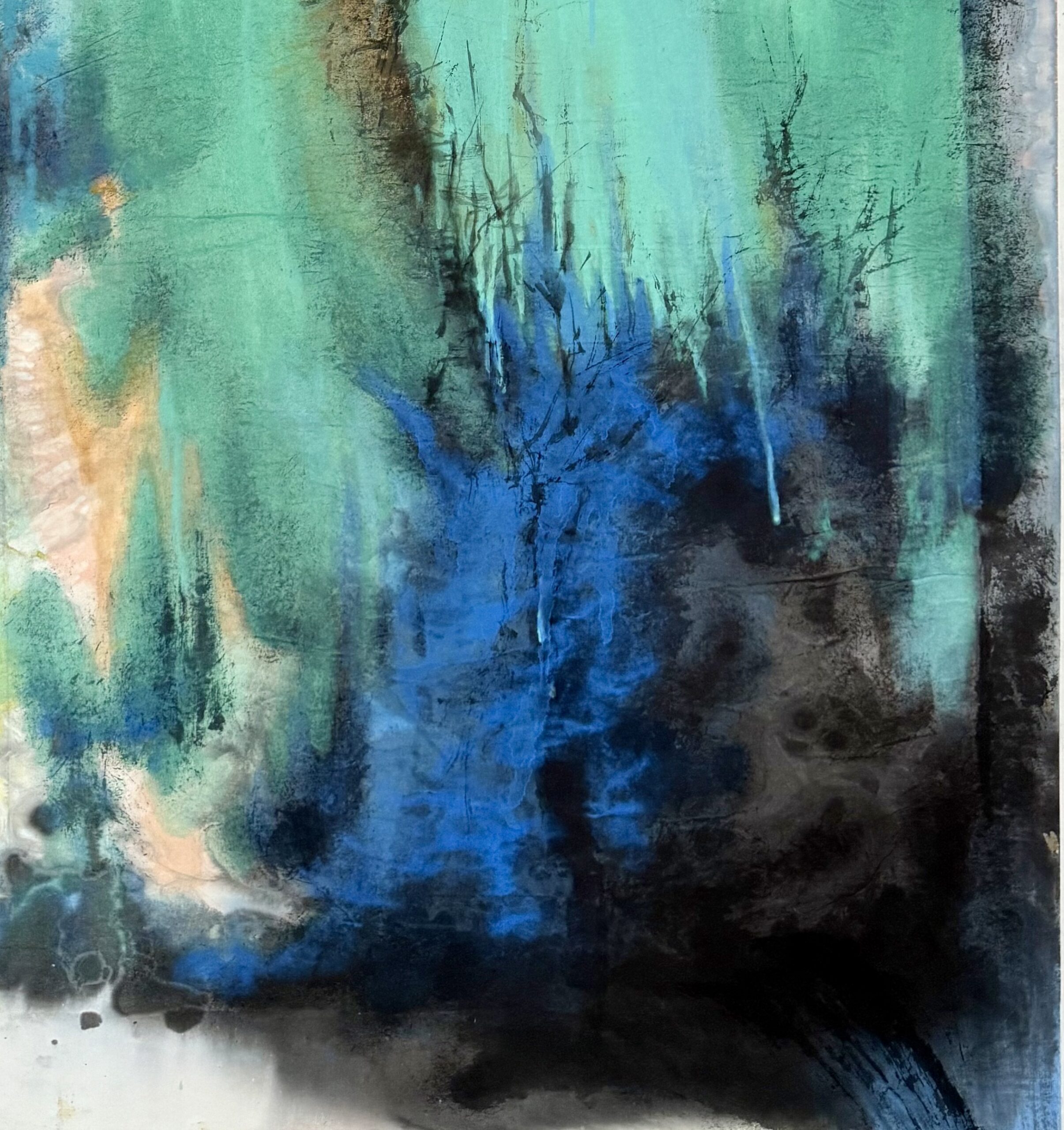 #Abstract Ink Art #Contemporary Ink #Ink on Paper #Turquoise Blue Art #Primal Energy #Vertical Abstract #Nature Abstraction #Chinese Abstract #Abstract Expression #Splashed Ink #Zen Decor #chinese art